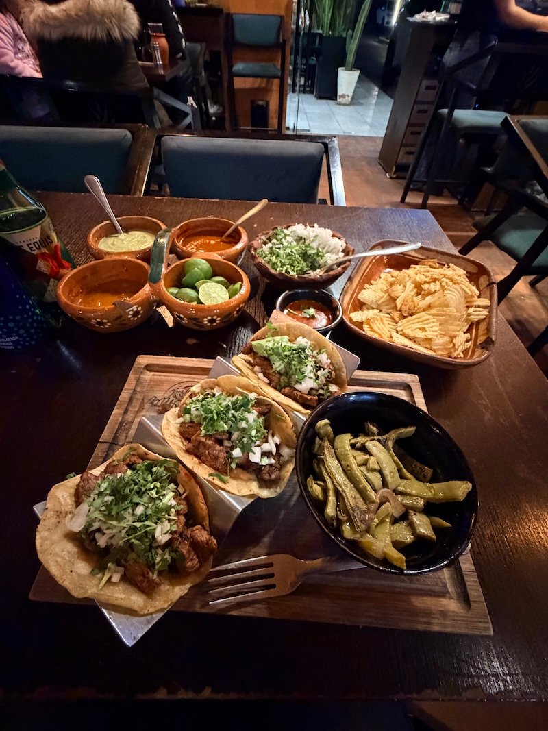 I had just finished signing the documents to take ownership of my first home and was starving! It was getting late, and I was worried that good options would be limited because everything closes early in Zibatá during the week. After doing a quick search on Google, I found that Agave Grill was open until 12:30 AM, so that is where I went. When I sat down, my waiter quickly came to my table to welcome me and take my order. Even though my Spanish is not that good, I can order food with no problem, but he was courteous enough to find a waiter who spoke English. My waiter, Gabriel, came over and helped me for the rest of the time. I ordered a celebratory Beer, water, Picanha tacos with Nopales (Cactus), and potato chips with Valentina hot sauce. The flavors and service were great, and the atmosphere was lively and energetic. I will definitely be back and look forward to having more of their delicious food. ----------------------------- ¡Acababa de terminar de firmar los documentos para tomar posesión de mi primera casa y me moría de hambre! Se estaba haciendo tarde y me preocupaba que las buenas opciones fueran limitadas porque todo cierra temprano en Zibatá durante la semana. Después de hacer una búsqueda rápida en Google, encontré que Agave Grill estaba abierto hasta las 12:30 a. m., así que fui allí. Cuando me senté, mi camarero vino rápidamente a mi mesa para darme la bienvenida y tomar mi pedido. Aunque mi español no es muy bueno, puedo pedir comida sin problemas, pero fue lo suficientemente cortés como para encontrar un camarero que hablara inglés. Mi camarero, Gabriel, se acercó y me ayudó el resto del tiempo. Pedí una cerveza de celebración, agua, tacos de picaña con nopales y papas fritas con salsa picante Valentina. Los sabores y el servicio fueron excelentes, y el ambiente era animado y enérgico. Definitivamente regresaré y espero probar más de su deliciosa comida.